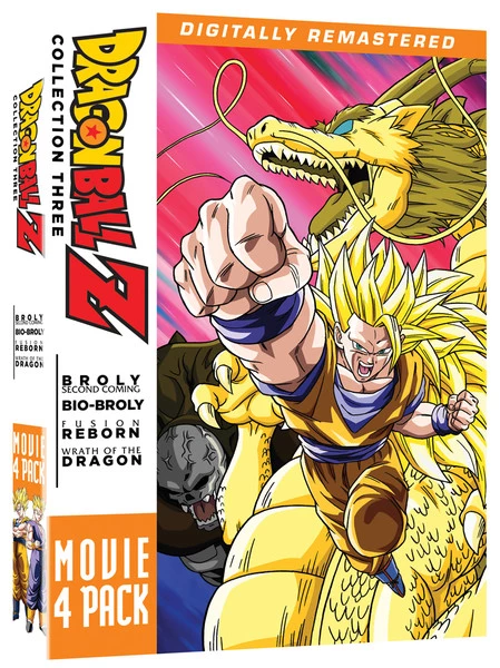Dragon Ball Z Movie Collection 3 contains movies 10-13: Broly: Second Coming, Bio-Broly, Fusion Reborn, and Wrath of the Dragon.