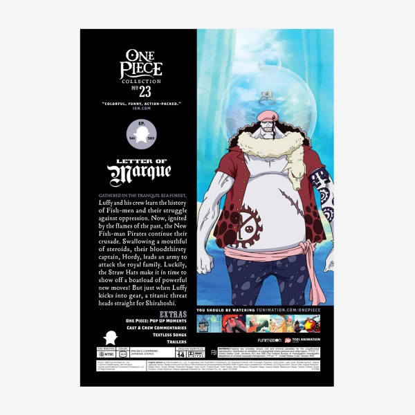 One Piece Collection 23 contains anime episodes 541-563 of the anime directed by Hiroaki Miyamoto.