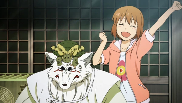 It can be difficult, especially when her classmates can’t know about her latest “issues” with Gintarou, the irritable fox-like Herald who’s protected the Saeki shrine for hundreds of years. But at least Makoto’s father, who runs the shrine, knows that Gintarou is more than an imaginary friend.