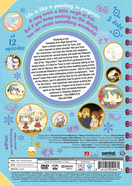 Hidamari Sketch: Honeycomb (Season 4) collection contains episodes 1-12 of the anime directed by Akiyuki Simbo.