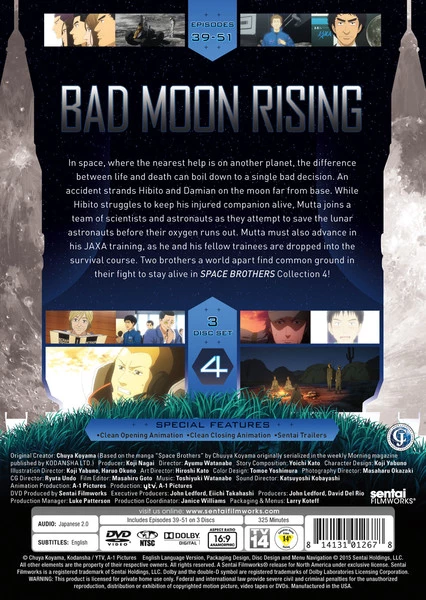 Space Brothers Collection 4 contains episodes 39-51 of the anime directed by Ayumu Watanabe.