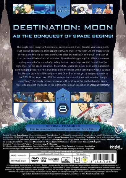 Space Brothers Collection 8 contains episodes 88-99 of the anime directed by Ayumu Watanabe.