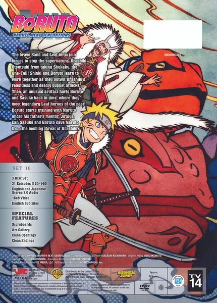 Boruto: Naruto Next Generations Set 10: Boruto Back in Time contains episodes 120-140 of the anime directed by Noriyuki Abe from Studio Pierrot.