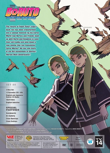 Boruto: Naruto Next Generations Set 8: Shadow of the Curse Mark contains episodes 93-105 of the anime directed by Noriyuki Abe from Studio Pierrot.