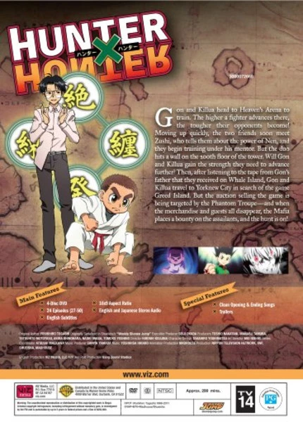 Hunter X Hunter set 3 contains episodes 27-50 of the anime directed by Hiroshi Koujina.