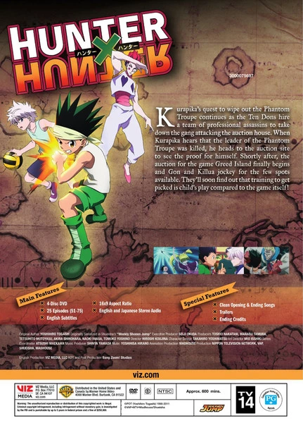 Hunter X Hunter Set 4 DVD contains episodes 51-75 of the anime directed by Hiroshi Koujina, the complete Greed Island Arc.