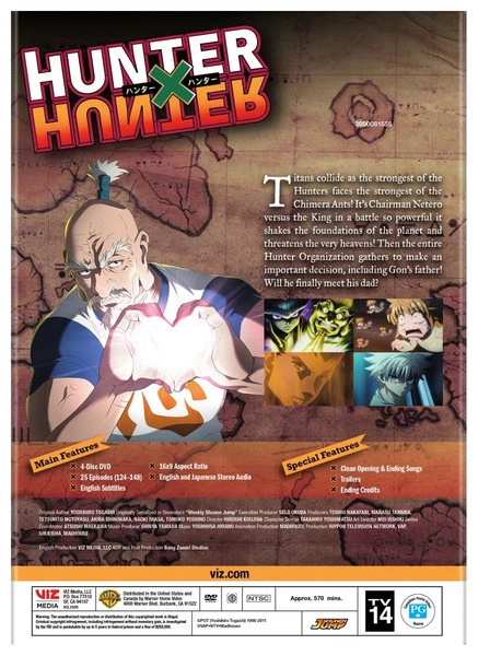 Hunter X Hunter Set 7 contains episodes 124-148 of the anime directed by Hiroshi Koujina, and contains the third part of the Chimera Ant arc.