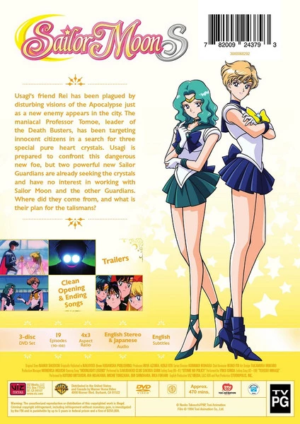 Usagi’s friend Rei has been plagued by disturbing visions of the Apocalypse just as a new enemy appears in the city. The maniacal Professor Tomoe, leader of the Death Busters, has been targeting innocent citizens in a search for three special pure heart crystals. Usagi is prepared to confront this dangerous new foe, but two powerful new Sailor Guardians are already seeking the crystals and have no interest in working with Sailor Moon and the other Guardians. Where did they come from, and what is their plan for pure heart crystals?