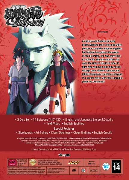 Naruto Shippuden set 33 contains episodes 417-430 of the anime directed by Hayato Date.