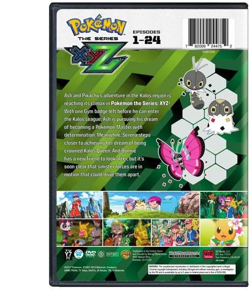 Ash and Pikachu’s adventure in the Kalos region is reaching its climax in Pokémon the Series: XYZ! With one Gym badge left before he can enter the Kalos League, Ash is pursuing his dream of becoming a Pokémon Master with determination. Serena steps closer to achieving her dreams of being crowned Kalos Queen, and Bonnie has a new friend to look after, but it’s soon clear that sinister forces are in motion that could drive them apart.