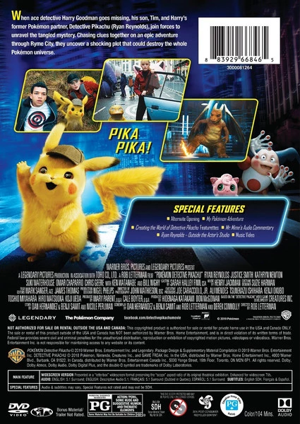 Special Features: Alternate Opening, My Pokémon Adventure, Creating the World of Detective Pikachu Featurettes, Mr. Mime’s Audio Commentary, Ryan Reynolds – Outside the Actor’s Studio, “Carry On” by Rita Ora & Kygo Music Video.