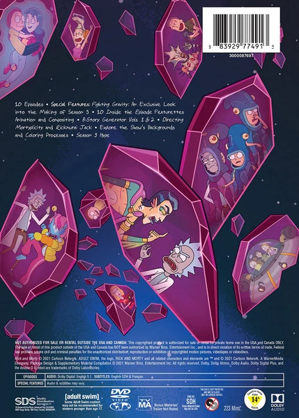 Special Features: Fighting Gravity: An Exclusive Look into the Making of Season 5, 10 Inside the Episode Featurettes Animation and Compositing, B-Story Generator Vols. 1 & 2, Directing Mortyplicity and Rickmurai Jack, Explore the Show’s Backgrounds and Coloring Processes, Season 5 Hype